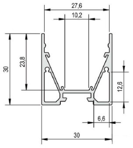 ALU profil elox CATANIA 3030 BLACKLINE, prisadený/závesný, 30x30mm, 3m