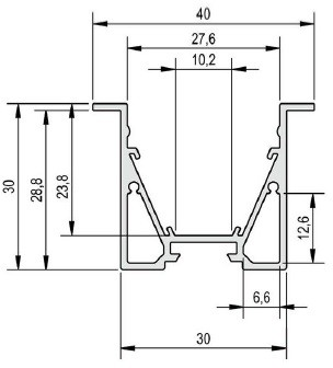 Hliníkový profil na zafrézovanie ALU-CATANIA-30-T je určený na tvorbu svetelných LED línií a drážok v strope, či stene. Má dva rovnobežné duté priestory, ktoré je možné použiť ako káblové kanály.