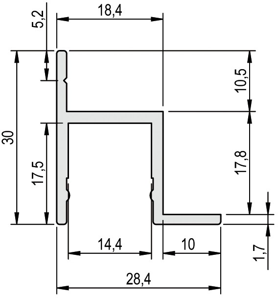 Alu profil elox SOFFITTO na tvorbu štrbiny do rohu, 28,4x30mm, 3m