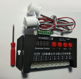Každá schodnica sa samostatným 2-vodičovým káblom (stači 0.35-0.5mm2 lankový vodič) prepojí s kontrolérom umiestnenom na vhodnom servisnom mieste)Aktiváciou senzora sa spustí cyklické postupné rozsvecovanie jednotlivých LED línii od prvej po poslednú, resp. od poslednej ku prvej. Okrem klasického CV výstupu na 12 či 24VDC LED pásy (napájací zdroj sa zvolí podľa napätia pripojeného LED pásu či už je 12V alebo 24V) je možné aby kontrolér pri aktivácii scény generoval aj SPI signál pre digitálne LED pásy (WS2811 napr. ) ktoré sa môžu použiť na obvodové osvetlenie schodiska (kontúra) Tento typ SPI LED Pásu sa bude teda postupne pomaly rozsvecovat po jednodtlivých pixeloch od zaciatku po koniec (a opacne, podla smeru a aktivácie daného PIR senzora) V prípade použitia našich špeciálnych dekóderov navrhnutého do ALU lišty (umiestnené 1ks v každej schodnici), je možné nepoužiť "individuálne výstupy pre LED línie na kontroléry" ale opačne, jedným 3žilovým vodičom preslučkovať všetky schodnice a rozsvecovať schodnice použitím digitálnej informácie (v schodnici teda budú použité klasické CV LED pásy a nie digitálne) Táto koncepcia je vhodná pre všetky schodiská ktoré už majú kabeláž zabudovanú a nieje ju možné vymeniť (nutné vhodne nadimenzované prierezy aspoň 2 napájacích žíl, tretia žila je určená pre dáta a môže byť veľmi tenká) Keďže SPI výstup je možné nastaviť na výrazne väčší počet ako je počet kanálov kontroléra (18) je ho týmto konceptom možné použiť aj na výrazne väčšie a komplexnejšie schodiská s veľkým počtom schodov (2x PIR vsak ostáva)Tento kontrolér patrí medzi hobby produkty, preto niektoré pokročilé funkcie nastavení atď nemusia byť dostupné v tejto verzii.