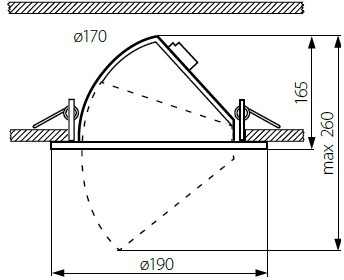 Zapustené podhľadové svietidlo s oplálovým krytom.