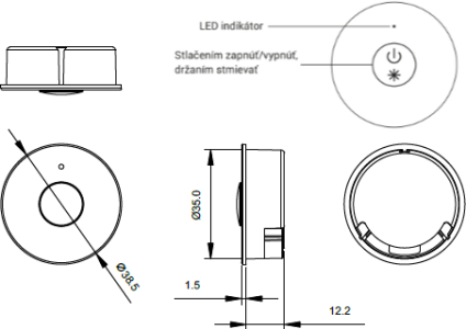 Ovládač stmieva v 256 úrovniach hladko bez blikania a dosahom cez 20m, biela farba povrchu.
