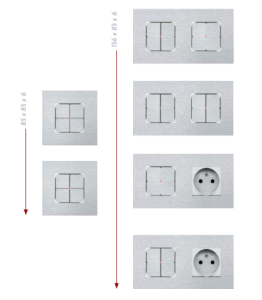 Vypínač LARA CARRE, 24V DC, 2/4 tlačítka, biele podsvietenie,červená kontrolka, ALU
