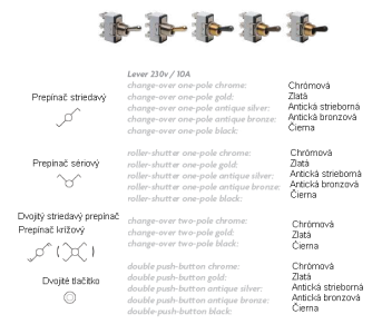 Páčky a tlačítka pre CJC dizajnové kryty série NINA, 230V AC