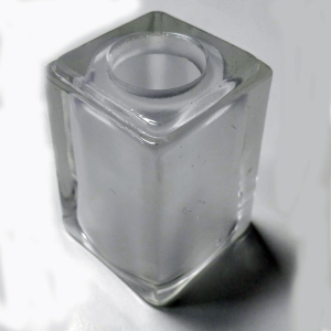 Náhradný sklenený hrnček,výška 60mm, vrch 40x40mm-otvor21mm, spodok46x46mm, otvor37mm