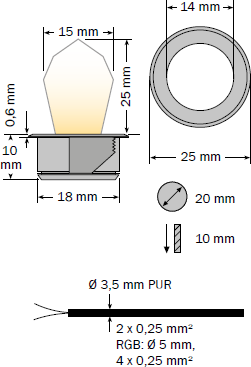 Dodávané s 5m káblom s voľným zakončením, bez napájacieho zdroja a riadiacej techniky.