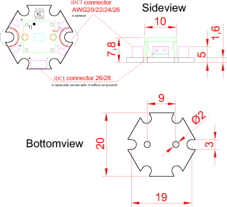 LED modul na ALU STAR HEX substrate hr. 1,6mm, s BOOST režimom s voliteľnými optikami, IDC konektormi. ESD ochrana na PCB, Prúdový driver on board. CCT 3000K / Teplá biela s dvojitym IDC AWG28 konektorom