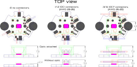 LED modul na ALU STAR HEX substrate hr. 1,6mm, s BOOST režimom s voliteľnými optikami, IDC konektormi. ESD ochrana na PCB, Prúdový driver on board. CCT 4000 / Neutrálna biela s dvojitym IDC AWG28 konektorom