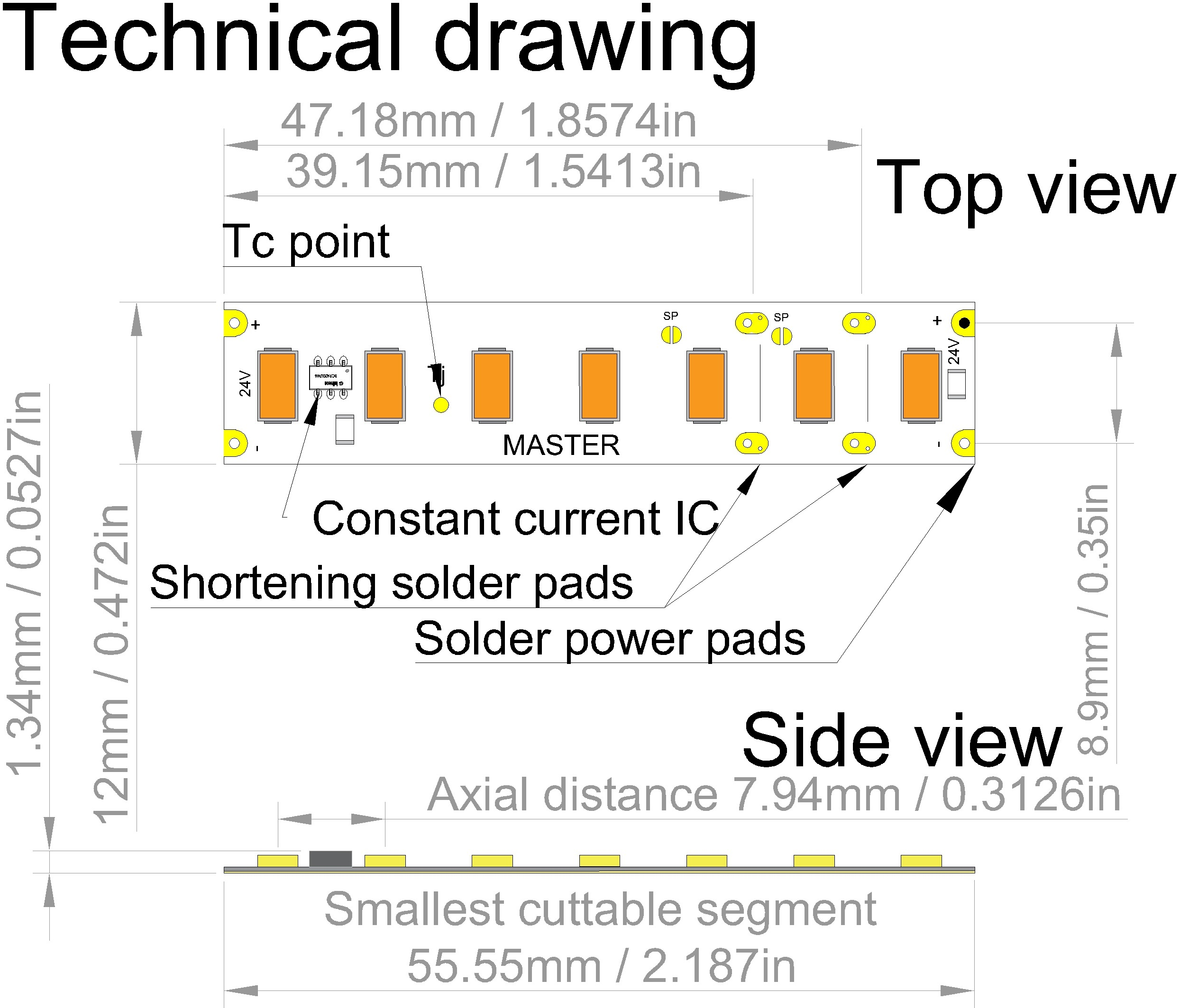 | Osová vzdialenosť LED čipov. Osová vzdialenosť LED čipov (mm). | 7,93 mm |