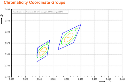 | Počet BINov LED na výrobku Presnosť BINovania LED ovplivňuje kvalitu osvetlenia - ak bude výrobok osadený s LED, ktoré pochádzajú z rôznych BINov, je veľká šanca že napr. pri homogénnom/difúznom osvetlení budú jednotlivé rozdielnosti viditeľné - toto sa 10x znásobuje pri zalievaní. | 1 |