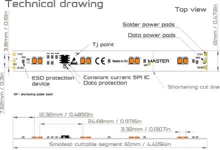 | Min.počet LED/sekciu po skrátení Väčšinu sekcií LED pásov MASTER je možné skrátiť na menší počet LED v sekcii. Tento parameter uvádza na aký min. počet LED v 1 segemente je možné skrátenie realizovať (nutné preletovať kvapkou cínu najbližši bod SP). Pozor-daná sekcia bude mať iné Umin. | 0 |