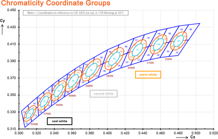 | Počet BINov LED na výrobku Presnosť BINovania LED ovplivňuje kvalitu osvetlenia - ak bude výrobok osadený s LED, ktoré pochádzajú z rôznych BINov, je veľká šanca že napr. pri homogénnom/difúznom osvetlení budú jednotlivé rozdielnosti viditeľné - toto sa 10x znásobuje pri zalievaní. | 1 |