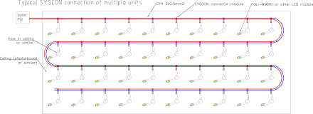 Miniatúrny LED iluminátor pre dekoračné osvetlenie pomocou optického vlákna, alebo pre vytvorenie efektu kryštálového neba pomocou kryštálových koncoviek a 3m dlhým prívodným káblom pre inštaláciu LED modulov do hviezdy. Svetlo je krásne sústredené pomocou optiky do malého miesta, a tak je efektívne nasmerované do vlákna alebo kryštálu Prúdovo napájaný iluminátor s vyšším napätím (cca 17-19V) a prúdom 0-45mA je vhodný všade tam, kde potrebujete malý a výkonový LED modul, s maximálnou efektivitou, prípadne plánujete vytvoriť osvetlenie s napr. "pulzujúcim efektom" Pri pulzoch môžete využiť vyšší prúd a teda jas po krátku dobu. Napr. použitím LED modulu vo svojom vlastnom svietidle(integrovaný do kovovej platne) viete ho budiť prúdom vyšším ako LED moduly, ktoré niesú nijako chladené. Okrem toho, použitím napr. trblietavej elektroniky je možné využiť pulzy na vyššie prúdy ako by sa LED modul pri bežnej prevádzke uchladil. A čo viac : LED Moduly je možné veľmi efektívne a profesionálne hromadne inštalovať použitím SYSCON CV2CC konektorového modulu (voliteľné príslušenstvo). Výhoda tohto SYSCON CV2CC modulu je , že obsahuje na sebe priamo malý prúdový zdroj a IDC2 samorezné konektory pre rýchlu inštaláciu káblov do konektoru jednoduchým zatlačením (konektory majú samorezné čeluste a prerežu sa cez izoláciou až ku menednému jadru vodiča, čim nastane perfektný spoj, bez nutnosti fyzického rozdelenia a pracného spájania káblov. Okrem toho SYSCON CV2CC modul obsahuje možnosť BOOST režimu, t.j. zo štandardného 20mA prúdu (výkon 0,48W/modul) je možné nastaviť prúd až 2-násobný výkon 45mA (1,08W), čo bude mať za následok výrazne väčšiu intenzitu (veľmi vhodné napr. pre kryštálové nebo, keď chcete vytvoriť efekt neba s rôznymi intenzitami). Pre BOOST režim je však nutné uistiť sa že chladenie LED modulu je dostatočné a udržať prevádzkovú teplotu LED modulu pod 50°C. Pri použití kryštálovej koncovky je možné LED Modul inštalovať naskrutkovaním koncovky na M10x1 závit a následným zatlačením do nainštalovanej hmoždinky v materiále (súčasťou kryštálovej koncovky)