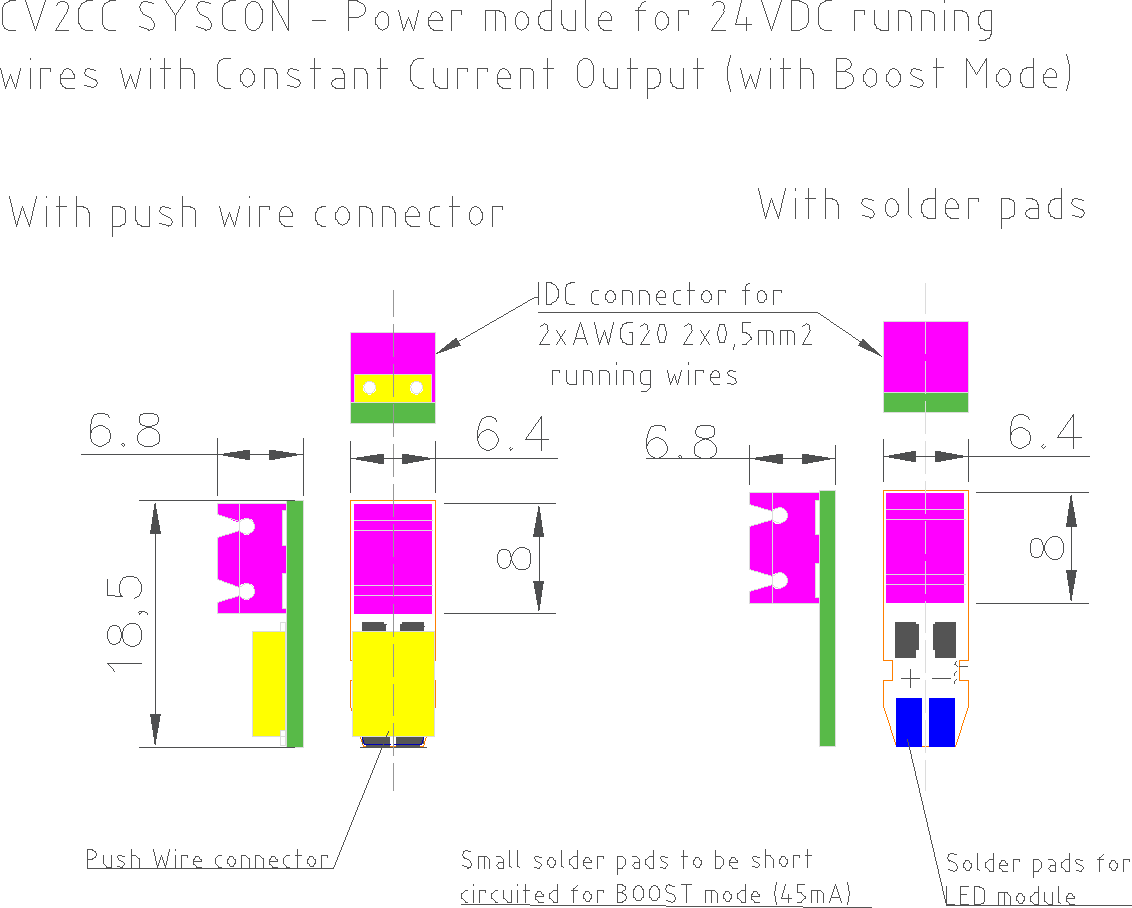 Dostupné sú aj iné prevedenia (prúdové s krátkym či dlhým prívodným káblom, 24VDC verzie s dlhým či krátkym káblom bez SYSCON, Super nízke prevedenie pre 24VDC (BASE-CV24), SYSCON konektorové moduly, a iné.