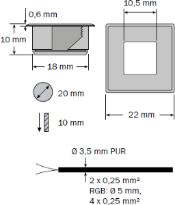 | Montažny otvor Rozmer montážneho otvoru v prípade že je svietidlo zapustené | 20 mm |