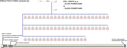 Radova lišta s 2x IN (pre Loop-IN a Loop-OUT) je ideálna pre mnohočlenné pripojenie spotrebičov ako LED moduly, LED pásy, atď na 1 spoločný a veľký energetický uzol (napr. 100x LED modul 4W/24VDC na centrálny nap. zdroj 480W/24VDC) Táto radová lišta eliminuje chaos pri zapájaní početných káblov, a zároveň pomocu tavnej auto-poistky umožňuje ochrániť nap. zdroj či kontrolér v prípade skratu ktoréhokoľvek spotrebiča. Radová lišta sa môže pomocou DIN úchytov (dodávané samostatne) uchytiť na DIN lištu, alebo jednoduchým nalepením na akrylickú obojstrannú pásku nalepiť na akýkoľvek vhodný a pevný povrch (napr. vnútorné šasi svietidiel) Radová lišta je koncipovaná ako 1-pólová takže pre monochromatické LED spotrebiče použite 2ks, pre CCT adjustable (BIO) požite 3ks, pre RGB 4ks a pre RGBW 5ks. Zvolte vhodný skratový prúd pre poistku (vhodná hodnota pre danú inštaláciu) Vstupný konektor má Imax. prúdový limit 24A/svorku, preto ak je potreba väčších prúdov, kontaktujte nás (dostupná druhá verzia má limit 2x 32A) Pre výstupné porty konektorov Wire2Board používajte vodiče 18-22AWG (0.75mm2-0.34mm2), max. výstupný prúd 5A/výstup.