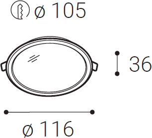 | Montažny otvor Rozmer montážneho otvoru v prípade že je svietidlo zapustené | 105 mm |