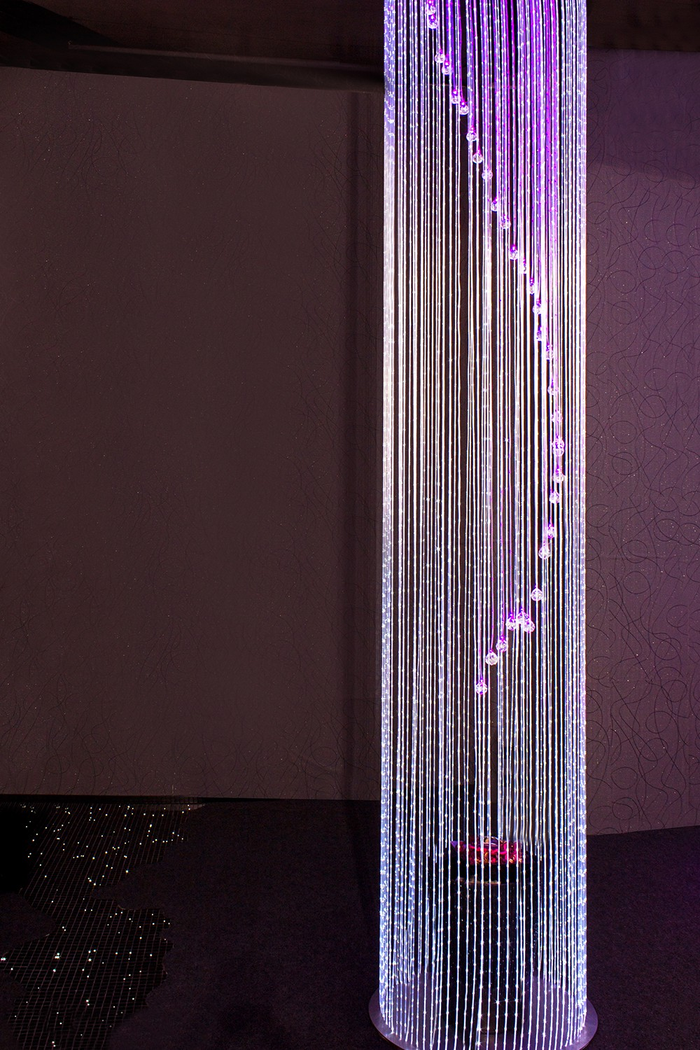 A traditional and dominant luminaire made with optic fibres and crystals, comes in many sizes and colours. It is suitable for receptions and open halls.