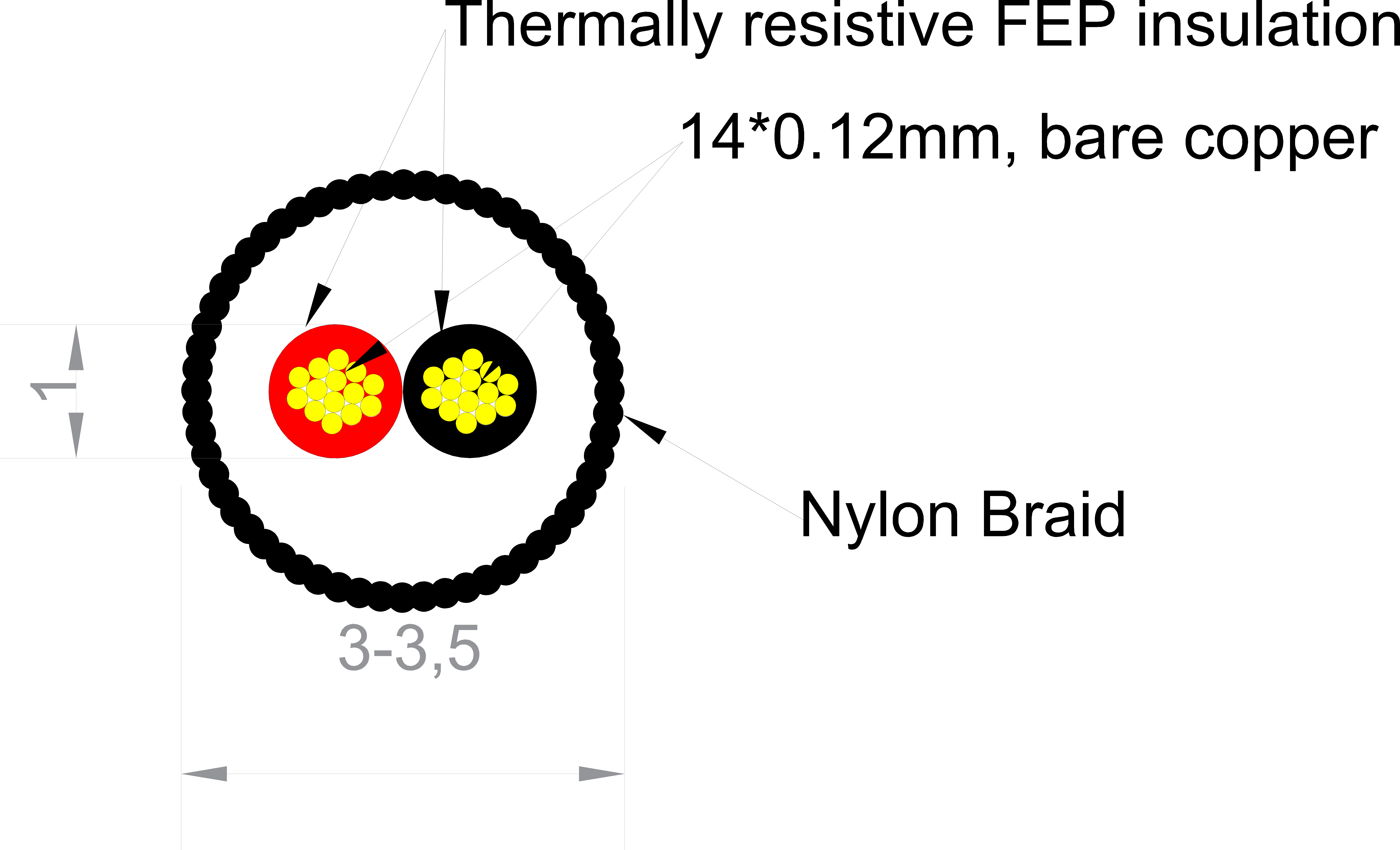 El. kábel obsahujúci 2 žily 0,14mm2, vhodne značené pre DC LED aplikácie (Red/Black žily) s FEP tenkostennou vysokoteplotne odolnou izoláciou, ktorá sa nezmršťuje pri letovaní. Vodiče sú integrované v nylonovom pohľadovom oplete voľne , ktorý je možné zároveň použiť ako nosný prvok pre kotvenie bremena až do hmotnosti 10Kg (predmetom vhodného kotviaceho detailu). Pre odlišnú farbu, resp. štruktúru káblu a počtu žíl nás neváhajte kontaktovať.