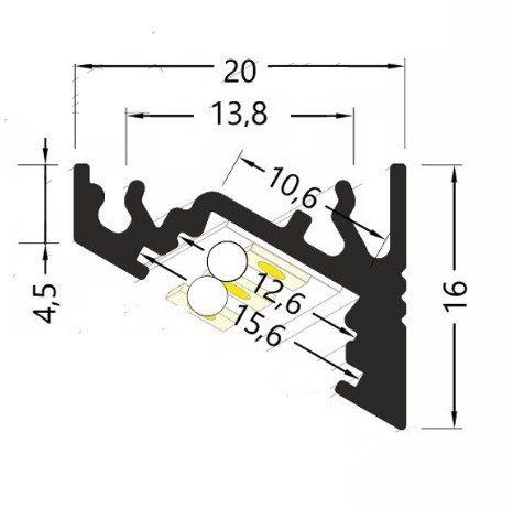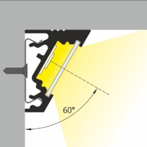 Alu profil Corner-60 umožňuje nasvecovať pod dvomi uhlami 30° a 60°. Príslušný nasúvací difúzor je mäkký a možnosť ohnúť ho až do takmer pravého uhla. Takto je možné osadiť difúzor aj v neprístupných rohoch. Toto riešenie je ideálne najmä pre nepriame podsvietenie ako aj osvetlenie nábytkov . Profil je vhodný pre všetky typy LED pásov do 10mm šírky a vďaka dvojitému uhlu (60 a 30°) je možné optimálne osadenie LED pásu tak, aby sa efektívne pracovalo so svetlom a jeho odrazom do priestoru.