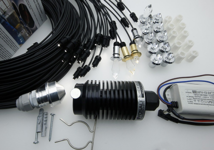 Štandardný set obsahuje : Chrómové kryštálové koncovky s inštalačnými hmoždinami,Dostatočnú dĺžku káblov pre napojenie mikro LED modulu na priebežný kábel formou jednoduchej samoreznej koncovky a nástroja na rýchlu aplikáciu, samotné LED moduly, Napájací zdroj. Samozrejme dĺžky, farbu svetla, farbu povrchu, atď. je možné v prípade záujmu upraviť podľa požiadavky.