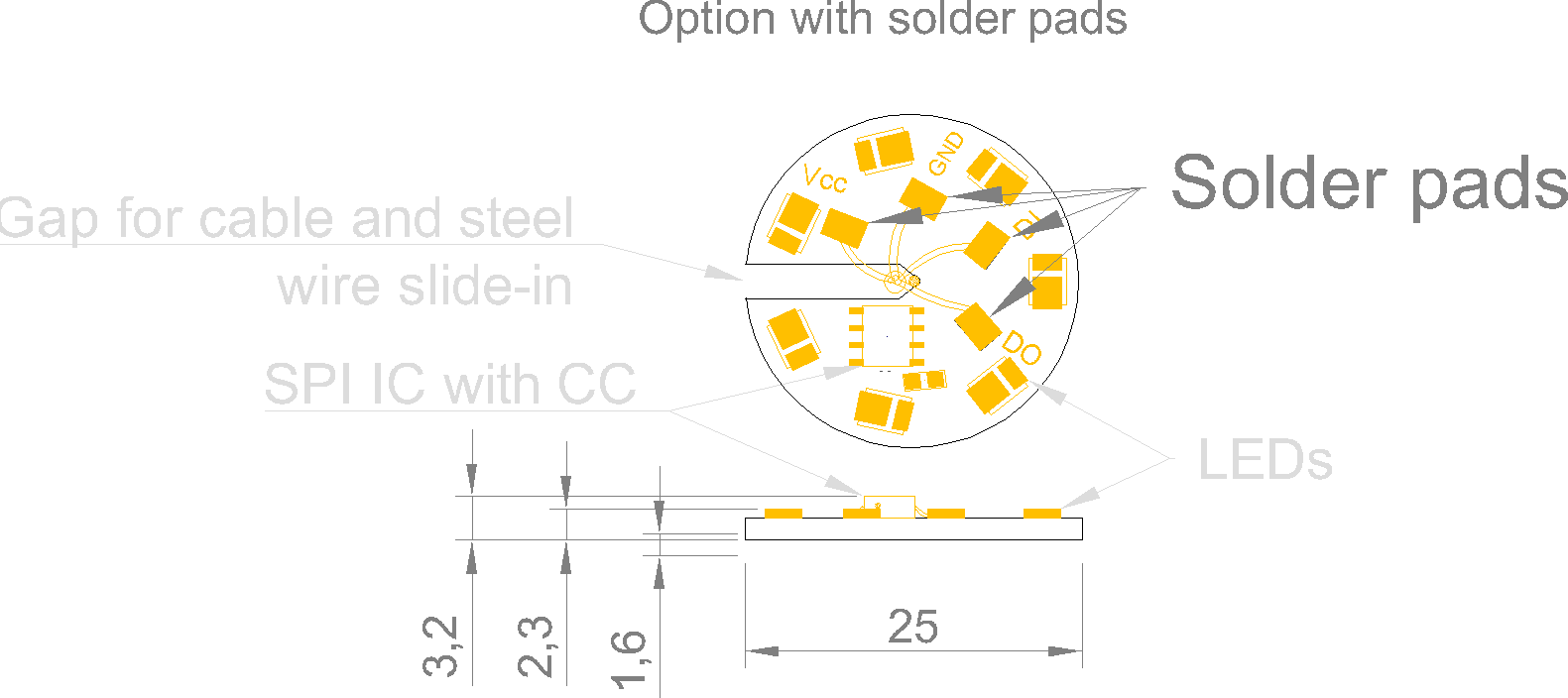 | Doplnkové funkcie / Vylepšenia Vylepšenia a funkcie sú asi najväčší zdroj inovácii a detailov, ktorý Vám dokáže uľahčiť montáž alebo predĺžiť životnosť. | Boost Režim, Inštalácia nalepením, ESD ochrana, Letovatelnosť, Bočný výrez |
