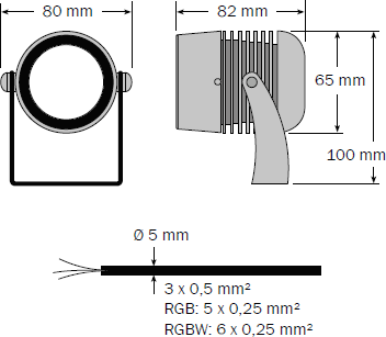 5m káblom s voľným zakončením, bez napájacieho zdroja a riadiacej techniky.