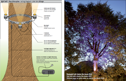 Pre efektové osvetlenie stromov je možné dokúpiť ďalšie príslušenstvo - 5m stromový pás, držiaky na svietidlá, spojovacie konektory, riadiacu techniku s možnosťou individuálneho vyskladania farebného či bieleho prevedenia.
